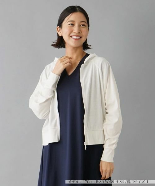 薄手コットンの軽やかな生地を使用したジップパーカー。身幅にややゆとりを持たせた、短めのレングスがトレンド感もありながらすっきりとした印象に見せてくれるデザイン。ベーシックなワントーンで使いやすく、ワンピースやスカートと合わせたキレイめコーデにも取り入れやすいアイテムです。フロントはスライダーの調整により開きのアレンジが可能となるダブルジップ仕様。気軽に羽織れるので、タウンからアウトドア、トラベルまで幅広いシーンで活躍してくれます。