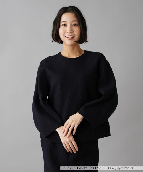 シンプルかつ洗練されたデザインが大人の日常着にぴったりのブラウス。リラックス感のあるシルエットながらも、袖に少しボリュームを持たせることで女性らしさを演出しています。毛ブレンドの素材が秋冬の季節にマッチし、きちんと感のある雰囲気に。ネックラインは浅めに設定し、落ち着いた佇まいに仕上げました。合わせるボトムスを選ばず、スタイリングの幅も広がります。アクセサリーを合わせることで、エレガントな雰囲気をさらに引き立てることができます。バックファスナーで開閉が可能です。
