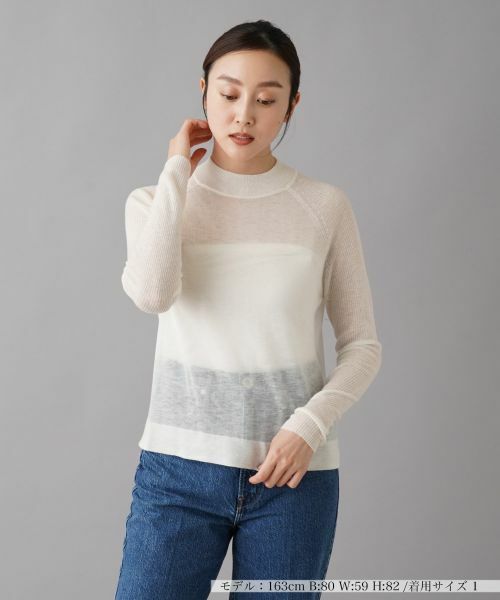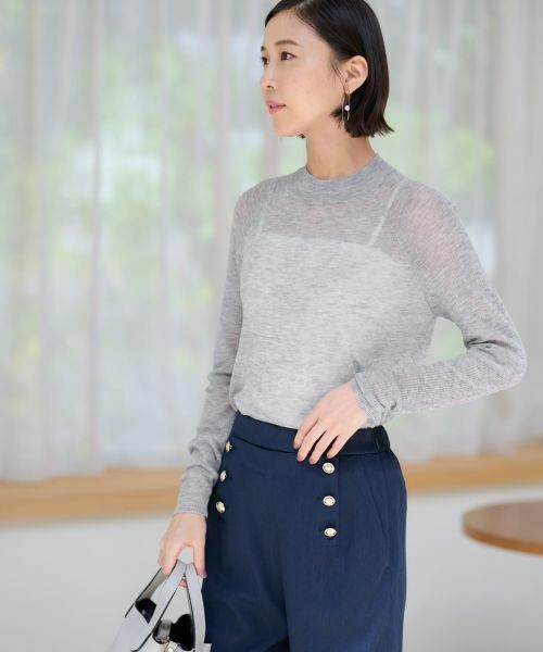 シンプルながらもさりげないデザインが特徴的なニットプルオーバー。透け感のある素材を使用し、軽やかな印象を演出。首に沿った高めのネックラインで、気になるデコルテを自然にカバーし、上品な印象に。程よいフィット感で、スタイリングにエレガントさをプラスします。コンパクトなシルエットで、ボトムスインでもアウトでもバランス良く着こなせるアイテム。デイリーユースから、カジュアルなディナーシーンまで幅広い場面で活躍します。