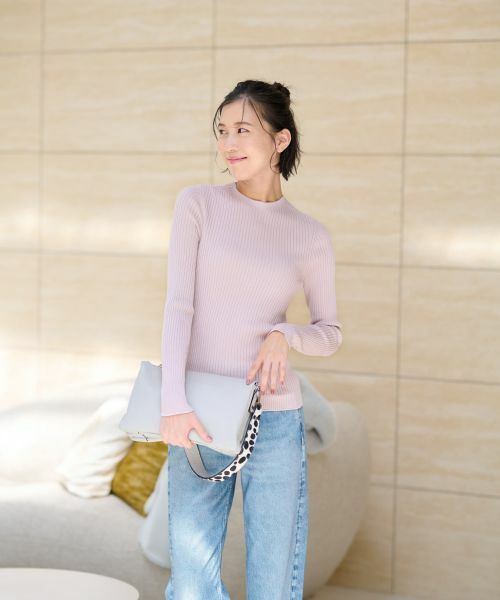 シンプルでありながらフィット感のあるデザインが魅力のトップス。リブ編みが施されており、体に優しくフィットし、スタイリッシュなシルエットを作り出します。程よい伸縮性があり、快適な着心地です。シンプルなスタイルでありつつも洗練された印象を与えるので、どんなボトムスとも合わせやすく、オフィスシーンはもちろん、カジュアルな日常のスタイリングにも活躍してくれるアイテムです。