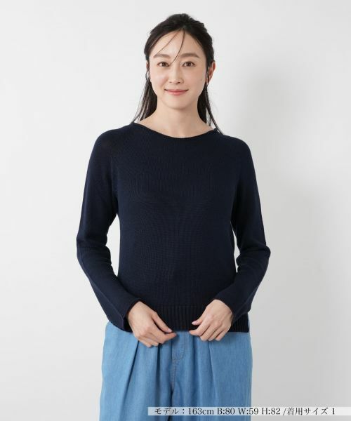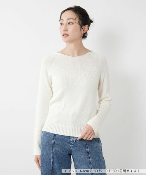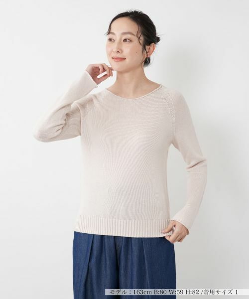 上品な印象のコットンニットプルオーバー。程よくフィットするシルエットと、柔らかな肌触りの素材が魅力の一枚です。裾にはリブを施し、シンプルながらもさりげないアクセントをプラス。ネックラインは程よくワイドに開き、抜け感をプラス。ベーシックなデザインで、デニムやスカート、ワイドパンツなどさまざまなボトムスと好相性。春夏は一枚でさらっと着こなせ、秋冬はジャケットのインナーとして長く愛用できるアイテムです。デイリーからオフィスカジュアルまで幅広く活躍します。