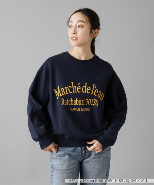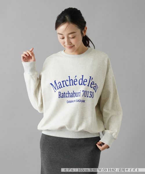 フランス語のエッセンスを取り入れたロゴデザインが印象的なスウェットトップス。柔らかな素材は、肌触りが良く、軽やかな着心地が魅力。ゆとりのあるシルエットがリラックス感を演出し、パンツにもスカートにも合わせやすい一枚です。配色プリントがコーディネートにアクセントをプラスしてくれます。シンプルながらも存在感のあるデザインは、デイリーから週末のお出かけまで幅広く活躍します。大人のカジュアルスタイルにおすすめのアイテムです。