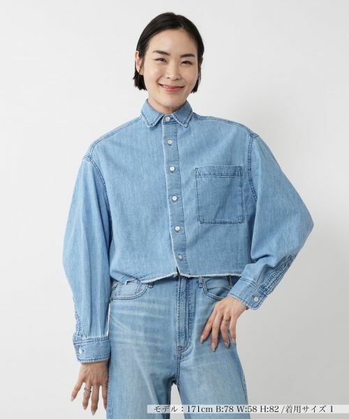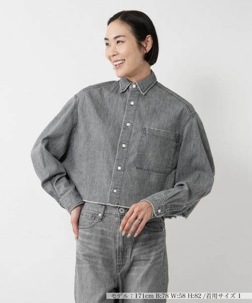 軽やかなクロップド丈が今の気分にぴったりなデニムシャツ。程よくハリのある素材感で、羽織るだけで立体感のあるシルエットを演出します。胸元のポケットやカットオフの裾が、抜け感とカジュアルさをプラス。ワイドパンツやスカートと合わせてバランスの取れたコーディネートが完成します。同カラーのデニムパンツとのセットアップスタイルもおすすめ。季節の変わり目に頼れる一枚です。