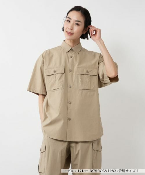 ほどよくゆとりのあるシルエットが魅力のミリタリーテイスト漂う半袖シャツ。軽やかなコットン素材はさらりとした肌触りで、汗ばむ季節にも快適な着心地をキープ。胸元の立体ポケットがさりげないアクセントとなり、1枚で存在感のあるスタイリングに仕上がります。同素材のパンツと合わせたセットアップもおすすめ。足元はレザーサンダルやスニーカーを合わせれば、抜け感を加えた大人のカジュアルスタイルが完成します。