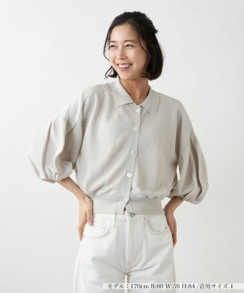 肌触りが柔らかく、軽やかな着心地で、季節の変わり目にぴったりの襟付きニットカーディガン。ゆったりとしたシルエットながらも、コンパクトな着丈がスタイルアップ見せを叶え、デニムやワイドパンツとの相性も抜群。ボリュームのある袖もクロップド丈にすることで重くなりすぎず、女性らしい印象をキープ。大きめのボタンがアクセントとなり、フロントを開けてラフに羽織るのもおすすめ。カジュアルからフェミニンなスタイルまで幅広く活躍し、デイリー使いに最適なアイテムです。