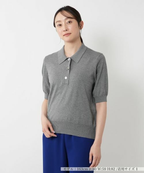 クラシカルなポロ襟デザインが新鮮な、半袖ニットプルオーバー。ほどよくコンパクトなシルエットが女性らしく、着こなしにきちんと感をプラスしてくれます。コットン100%の柔らかな肌ざわりの素材を使用し、春夏の軽やかなスタイリングにぴったり。シンプルだからこそボトムを選ばず、ワイドパンツやスカートとも好相性。ジャケットのインにも映えるので、オンオフ問わず活躍します。飽きのこないベーシックなカラーは、タイムレスに愛用したくなる一枚です。