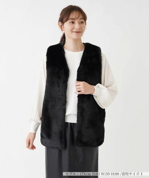 ふわふわと起毛感のある滑らかなフェイクファーを使用したベスト。ヒップまで隠れる着丈なので、自然に体型カバーをしてくれるのも嬉しいポイント。程よくボリューム感のあるルックスで、コーデをリッチに盛り上げてくれるデザイです。普段の着こなしに今シーズンらしさをプラスしたい時にもおすすめです。プレーンなニット&スカートに合わせるのはもちろん、柄ワンピースに合わせたボヘミアンテイストなコーディネートもおすすめです。