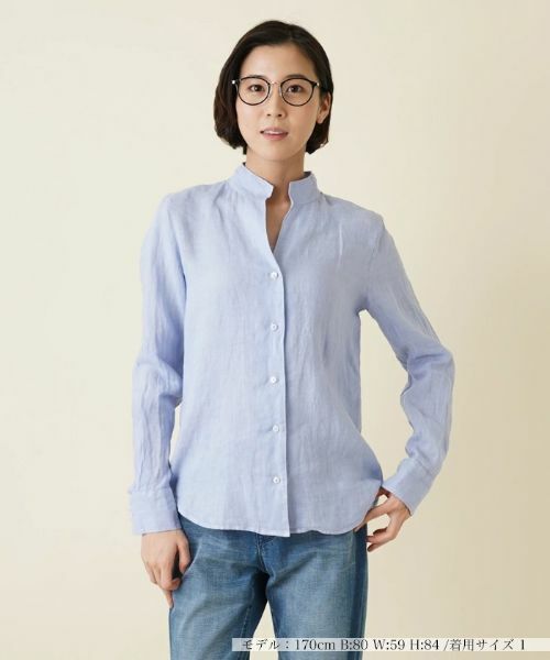 さらっとした清涼感あふれる着心地がこれからの季節に嬉しい麻100%の素材を使用した長袖シャツ。立体感のあるカッティングを施したネックラインが、ちょっぴりモダンな表情を演出します。ベーシックカラーから、コーディネートのアクセントになるカラーまで、豊富なカラー展開も魅力。飽きのこないシンプルなデザインとジャストで着られるサイズ感なので、パンツはもちろんスカートとも合わせやすくワードローブに一枚あると重宝するアイテムです。