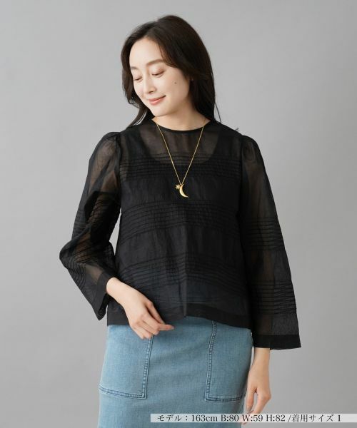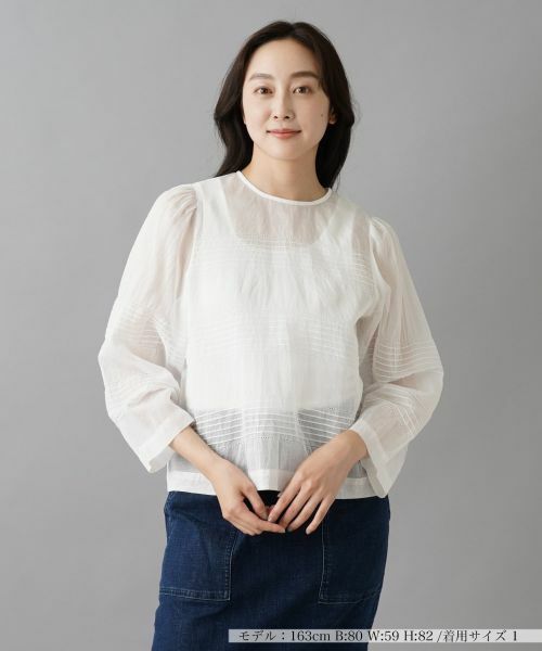 繊細なカットワークと細かなピンタックのディテールがロマンティックな雰囲気を演出してくれるブラウス。コットン100%のシアー素材を使用し、軽やかで女性らしい印象を与えます。浅めのネックラインと袖山のギャザーがクラシックな雰囲気を醸し出し、どんなシーンでも上品に見せてくれます。シンプルなデザインながらも細部にこだわった作りで、甘すぎることなく品のよい可憐なムードを演出。デニムと合わせたカジュアルなスタイリングや、きれいめなスカートやパンツと合わせればオフィススタイルにもぴったりです。背中のボタンで開閉が可能。
