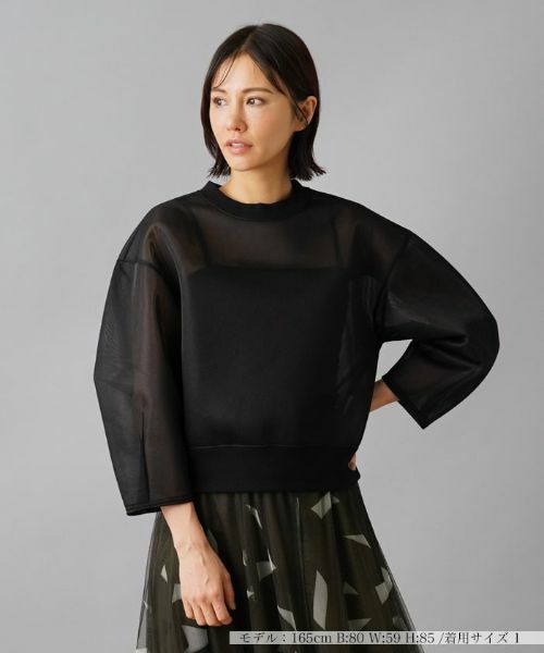 今季らしいムードを漂わせる、立体感のあるシアー素材のプルオーバー。襟や裾はリブで切り替え、さりげなく表情に変化を加えています。シルエットはドロップショルダーでゆったりと仕上げ、リラクシーな着心地を実現しました。統一感のあるカラーリングなので合わせるボトムスを選ばず、パンツを合わせたカジュアルスタイルからスカートでまとめたエレガントなフェミニンルックまで、幅広いコーディネートで活躍する一枚です。