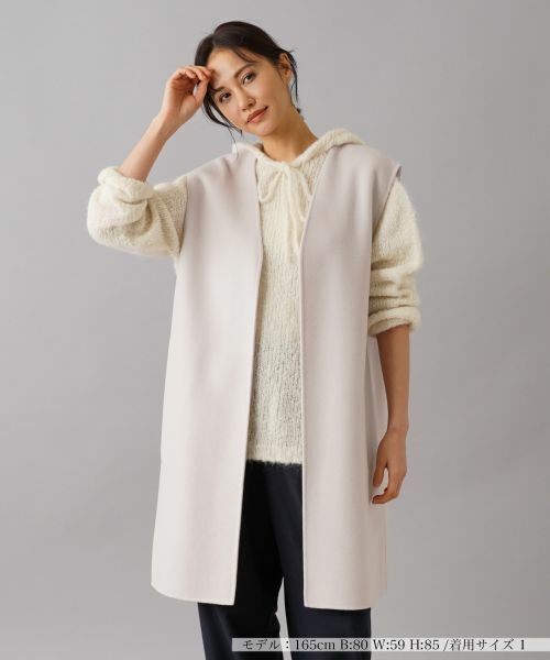 やや厚手の生地で仕立てた、Vネックロングベスト。肩を周りをしっかり覆うシルエットがトレンド感を漂わせ、スタイリッシュな印象を与えます。後ろ裾中央にはスリットが入り、動きやすさにも配慮しました。ヒップをさりげなくカバーする丈感で、自然と体型カバーも叶う嬉しいデザインです。インナーにはハイネックやタートルネックのニットを合わせると季節感もアップ。
