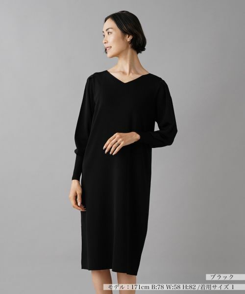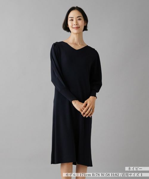 シンプルでありながら上品なデザインが魅力のミディ丈のニットワンピース。Vネックが首元やデコルテを美しく演出し、シルエットはゆったりとしたストレートラインで、リラックス感のある着心地を実現しています。袖口にはリブ編みが施されており、さりげないデザインポイントとして全体のシルエットを引き締めています。オフィスカジュアルとしてはもちろん、アクセサリーをプラスすればちょっとしたおでかけにも活躍する一枚。着回しが利くデザインで、幅広いコーディネートに対応できるアイテムです。