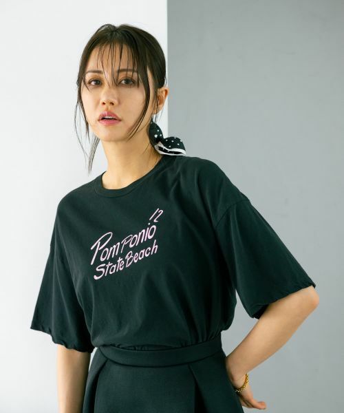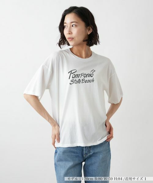 程よくリラックス感のあるシルエットが魅力のロゴプリントTシャツ。ゆったりとしたドロップショルダーと程よいオーバーサイズが、こなれた雰囲気を演出します。フロントのカジュアルなロゴがアクセントになり、一枚でサマになるデザイン。デニムと合わせたラフなスタイルはもちろん、タックインしてスカートと合わせればフェミニンな着こなしも楽しめます。肌触りの良いコットン素材で、デイリーに活躍する一着です。