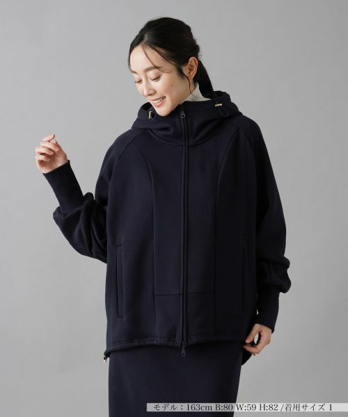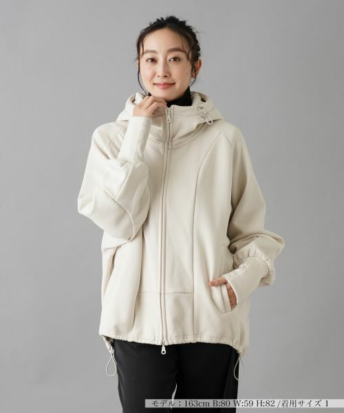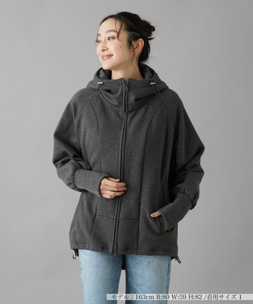 シンプルでモダンなデザインが目を引くフードジャケット。ドローストリングで裾のシルエットを調整できるディテールが、コーディネートの幅を広げます。裏起毛の軽やかな素材感とリラックス感のあるシルエットが快適な着心地で、アクティブなシーンでも頼れる一着です。ベーシックなカラーで、どんなスタイルにも馴染み、デイリーから週末のお出かけまで幅広く活躍。フロントはダブルジップ仕様で着脱もアレンジもスムーズに。後ろはヒップが隠れる丈感なので、パンツスタイルもすっきりとした印象にまとまります。