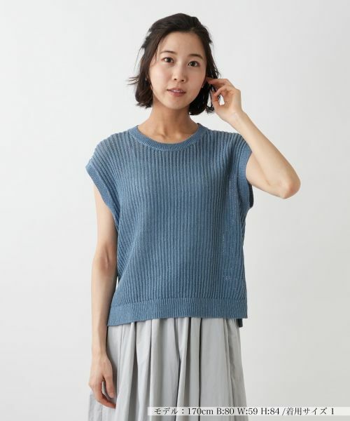 ショルダーラインを覆うリラクシーなシルエットのニットベスト。ざっくりとした編み地が肌離れのよい涼やかな着心地を叶えます。裾には控えめなサイドスリットをあしらい、軽やかな抜け感と動きのある表情をプラス。ボリュームのあるワイドパンツと合わせれば、程よくラフな大人カジュアルに。ミモレ丈スカートでまとめればフェミニンな着こなしに仕上がります。ベーシックながらもひとくせ効いたデザインで、ワードローブの頼れる主役アイテムになりそうです。