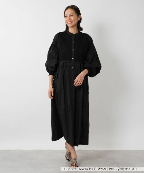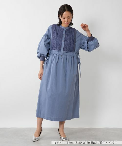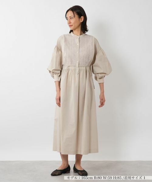 クラシカルな雰囲気漂う、レースベストを合わせたようなデザインが魅力のワンピース。繊細なレースディテールが前後に施され、フェミニンなムードを引き立てます。ボリュームのあるバルーンスリーブが特徴的で、着るだけでこなれたシルエットを演出。ウエストサイドのリボンもさりげないアクセントに。デイリーはもちろん、ちょっとしたお出かけにも活躍する一枚。シンプルなパンプスやフラットシューズと合わせれば、大人のナチュラルコーデを楽しめます。レースベストは取り外し不可。