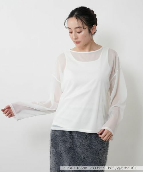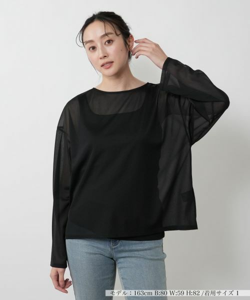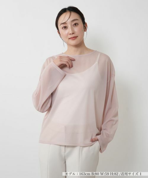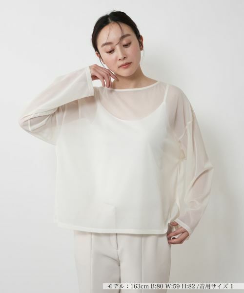 エアリーで軽やかなシアートップス。透け感のある柔らかな素材が女性らしい抜け感を演出し、インナーとのレイヤードを楽しめる一枚です。ゆったりとしたシルエットでリラックスした着心地ながら、程よいドレープ感が上品な印象を与えます。デイリーコーデにはもちろん、フェミニンなスタイリングにもマッチ。カジュアルにもエレガントにも着こなせる万能アイテムで、季節の変わり目にも活躍します。