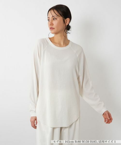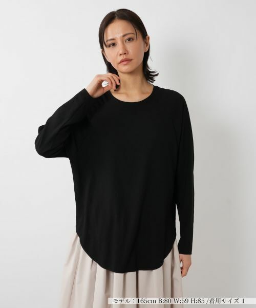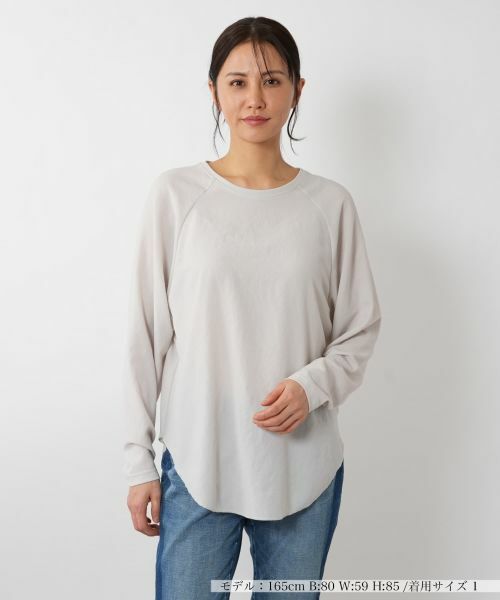 シンプルながらもこなれ感を演出するラウンドヘムのロングスリーブトップス。ゆったりとしたシルエットと、肩のラインに沿うラグランスリーブが、リラックスした着心地を叶えます。裾はメロウ始末で仕上げられ、軽やかさのあるデザインに。ソフトな肌触りの素材を使用し、デイリーカジュアルからレイヤードスタイルまで幅広く活躍。程よいドレープ感が女性らしさを引き立て、デニムやスカートとも好相性。シーズンを問わず長く愛用できる一枚です。