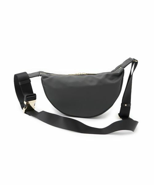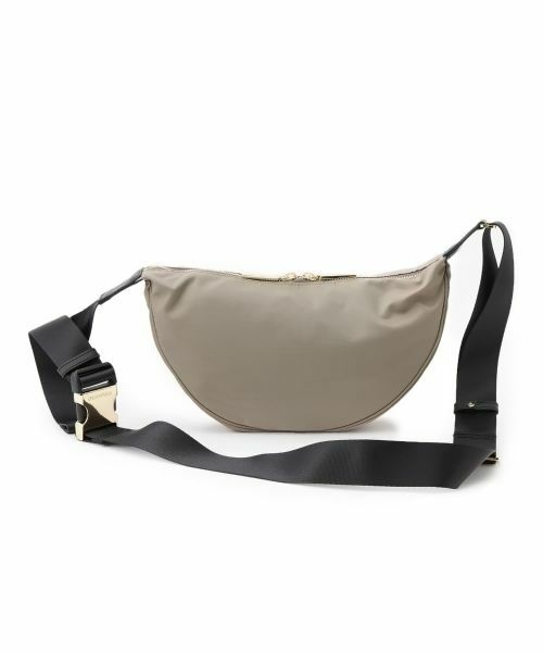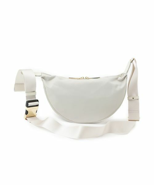 ミニマルでスタイリッシュなデザインが魅力のハーフムーンショルダーバッグ。柔らかな曲線を描くフォルムが、シンプルながら印象的な佇まいを演出します。ナイロン素材で軽量でありながら、長財布やスマホ、ポーチなどの必需品がしっかり収まる収納力。太めのショルダーストラップは調節可能で、快適な掛け心地を実現。金具のさりげない光沢が上品さをプラスし、カジュアルからモードな装いまで幅広く対応します。毎日のコーデに取り入れやすい一品です。