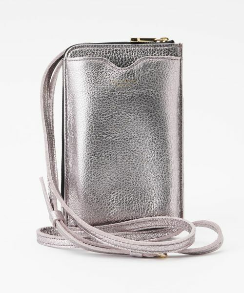 洗練された光沢感が目を引く、メタリックカラーのスマートフォンポシェット。コンパクトなフォルムながらスマートフォンやカード類をスマートに収納できる設計で、デイリーから旅先まで幅広く活躍します。外のポケットにはICカードが収まり、サッと取り出せるのも嬉しいポイント。長さ調整可能なストラップ付きで、斜め掛けとしても肩掛けとしても使えます。シンプルなコーディネートにモードなエッジを加える、小物使いが映えるアイテムです。