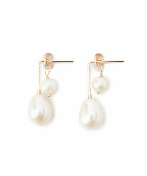 上品な輝きを放つ淡水パールを使用したピアス。大小のパールが揺れるデザインが女性らしいエレガントな印象を演出します。繊細なゴールドのラインが洗練された雰囲気をプラスし、どんなスタイルにも馴染むアイテム。キャッチ部分にもパールが付いているため、どの角度から見ても美しい仕上がりに。カジュアルからフォーマルまで幅広いシーンで活躍する、大人の女性にぴったりのアクセサリーです。