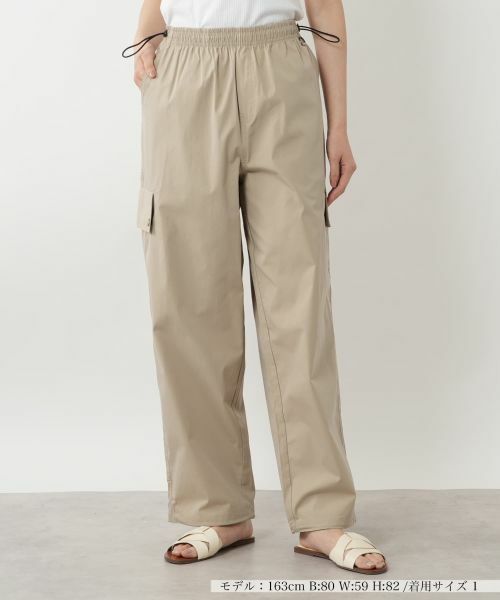 軽やかなコットン×ナイロン素材で仕立てたカーゴイージーパンツ。さらりとした肌離れの良い質感は、春夏のアクティブなシーンにぴったりです。ウエストは総ゴム仕様+ドローコード付きで快適なフィット感に。ゆったりとしたストレートシルエットが、脚のラインを拾わずリラクシーな穿き心地を実現します。サイドのフラップポケットが程よいアクセントに。Tシャツやシャツとのカジュアルコーデはもちろん、スポーティなトップスと合わせてアウトドア風にも着こなせます。