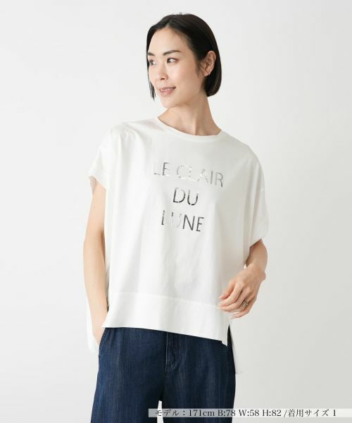 フロントのロゴが目を惹く、大人のためのカジュアルトップス。程よくゆとりのあるシルエットと、落ち感のある袖ラインがリラクシーな印象を演出。裾に前後差をつけ、サイドにスリットを施すことで抜け感をプラスし、ボトムインしなくても美しいバランスが叶います。さらりとしたコットン素材で肌離れがよく、暑い季節も快適な着心地。シンプルながら一枚でサマになるロゴTは、デニムからきれいめパンツまで幅広い着こなしに活躍します。
