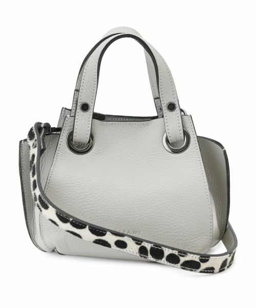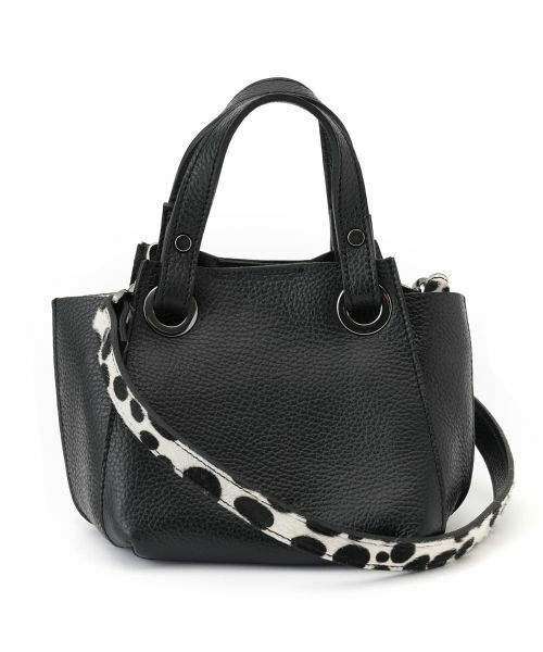 上質なシボ感のあるレザーが生み出すナチュラルな風合いと、手にしっとり馴染むタッチが魅力の2WAYトートです。ダルメシアン柄のヘアレザーをあしらったショルダーストラップにより肩がけも可能となる2WAY仕様。コンパクトながら底マチがあり、必要な小物がすっきり収まる実用性も備えています。シンプルなスタイリングにさりげない個性を加える、遊び心あるプラスワンアイテムです。