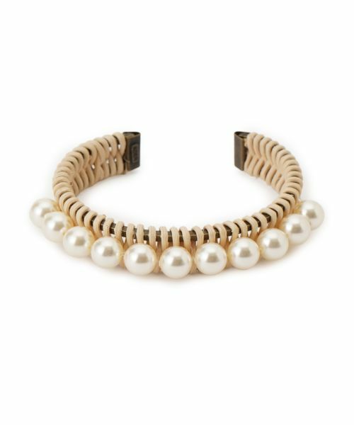春夏らしい雰囲気を感じさせるパール調パーツとラタン風編み込みのバングル。ナチュラルなラタン風素材に艶やかなパール調パーツの組み合わせが魅力的なアイテムです。ベーシックなシャツコーディネートなどに、さりげなく取り入れるだけでも洗練された雰囲気になります。