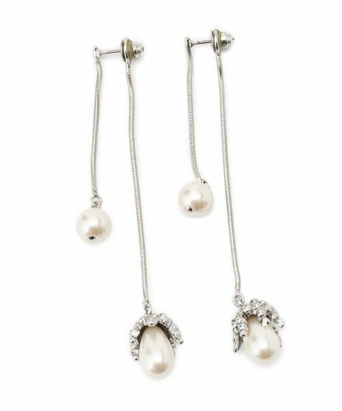 チェーンの先端にあしらったスズランの形をしたパール調モチーフが、大人キュートに輝くロングピアス。キャッチを交換すればシンプルなロングピアスとしても楽しめるので、気分やシーンに合わせてアレンジしてみてください。