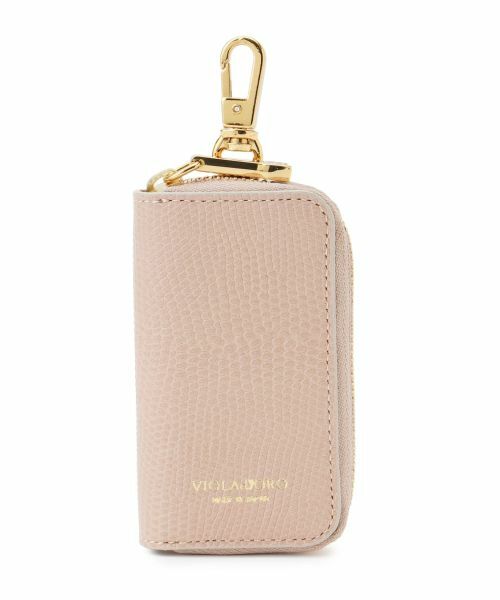 ナスカン付きでスマホポシェットなどに装着できるキーケース。上質な天然由来素材にトカゲの鱗のような型押しを施し、高級感のある表情に。中のキーホルダーはロングチェーンに繋いでいるため、鍵も取り出しやすく使い勝手も良いでしょう。