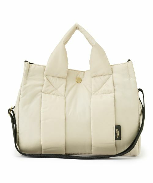ポリエステル系のふっくらとした手触りの素材で仕立てたトートバッグ。無地のシンプルなデザインは、様々なスタイルに合わせやすいのが魅力。付属のストラップを使えば肩掛けも可能な2WAY仕様で、日常使いに便利です。