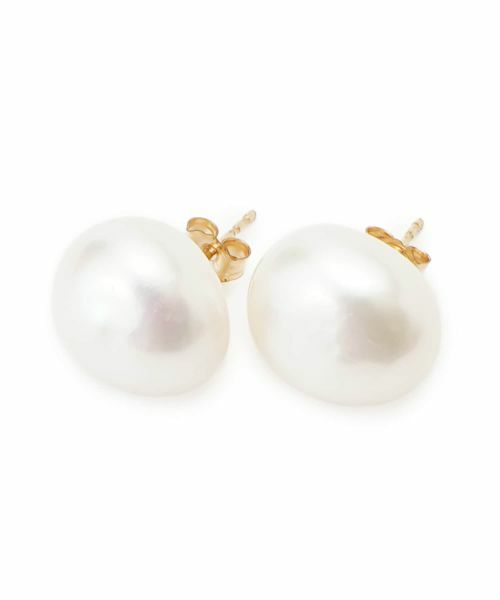 ちょっぴりいびつな形をした大粒の淡水調パールが、耳元で優しげに輝くスタッドピアス。シンプルなデザインで品の良さを保ちつつ、どこか都会的な雰囲気も感じさせるアクセサリーが、顔周りをちょっぴり垢抜けた印象にしてくれそうです。