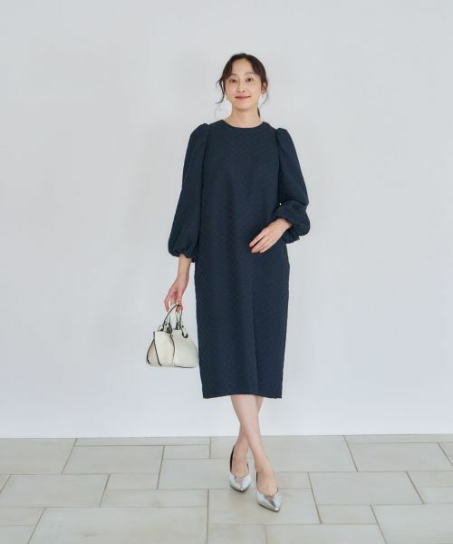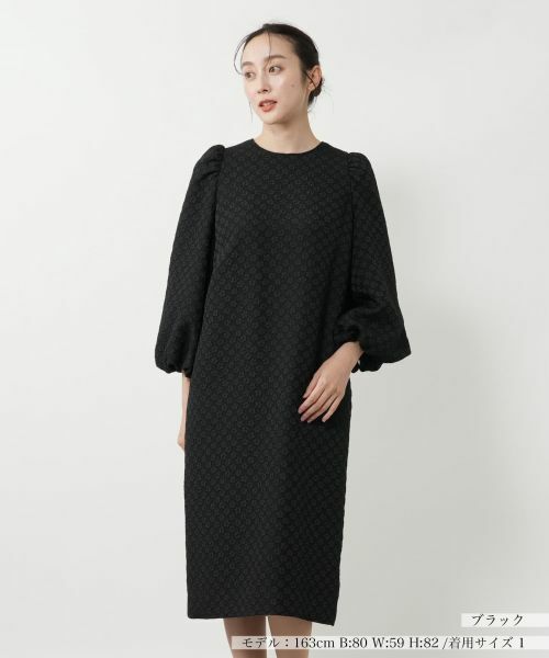 浮かび上がるような小花の織柄が、奥行きと上品さを感じさせるワンピース。デザインのポイントは、ふんわりと立体的なバルーンスリーブ。身体のラインを拾いにくく、リラックスした着心地ながら、一枚で華やかな存在感を放ちます。便利なポケット付きも嬉しいポイント。週末のお出かけやお呼ばれなどの特別なシーンにもぴったりのエレガントなアイテムです。
