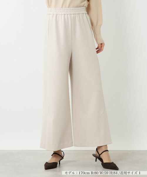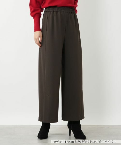 すっきりとしたウエスト回りが、スタイルアップ見せ効果を叶えるアンクル丈のワイドパンツ。裾の両サイドにあしらったベンツが、動くたびに軽やかな抜け感を演出。伸縮性のある素材とウエストの総ゴム仕様で、快適な穿き心地を実現しました。秋にぴったりのやや薄手の生地ながら、透けの心配がないのも嬉しいポイント。小物の持ち運びに便利なポケット付きで、デイリーユースにぴったりです。