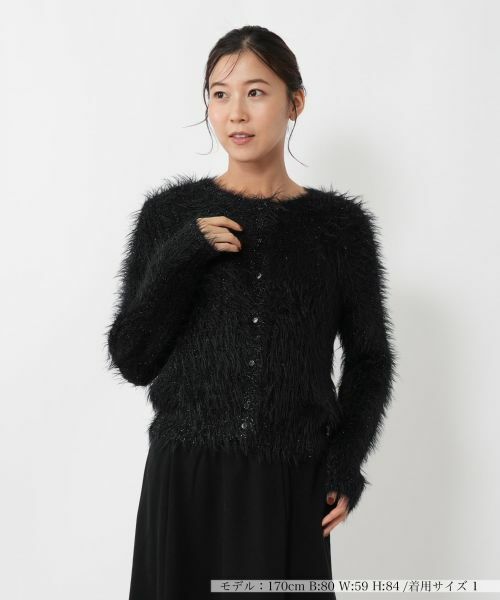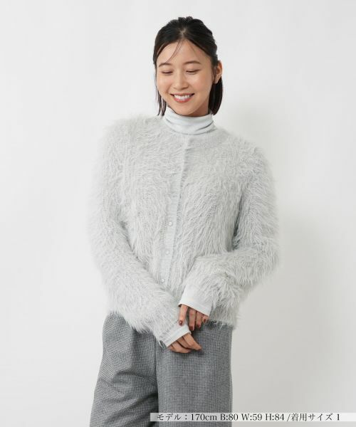 思わず触れたくなるような、シャギーニットで仕立てた華やかなカーディガン。きらりと輝くラメを織り交ぜることで、リッチで存在感のある表情に仕上げました。シルエットはベーシックなクルーネックなので着回し力も高く、フロントを留めてプルオーバー風に着こなすのも素敵です。羽織るだけでコーディネートが一気に華やぐ、主役級のアイテム。秋冬のイベントやお食事会など、少しドレスアップしたいシーンにもおすすめです。