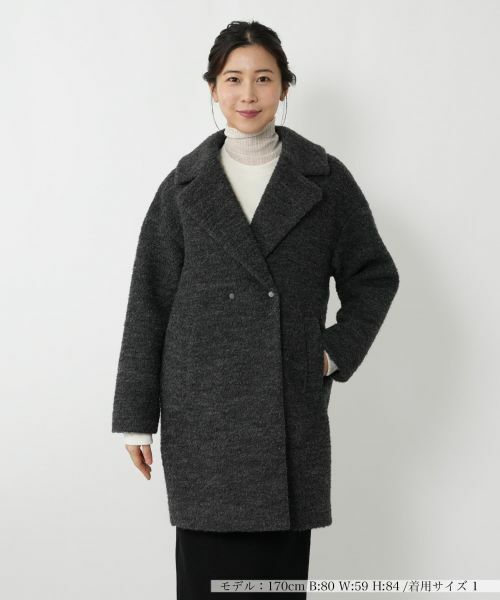 ふんわりとしたプードル調の表面感が魅力的な、軽やかなコートです。ノッチドラペルの衿元には大胆なカッティングを施し、ドロップショルダーのデザインと相まって、今の時代感を表現した洗練されたシルエットに仕上げました。ゆったりとした着用感ながらも、すっきりとした印象を与え、様々なコーディネートに上品な抜け感をプラスします。秋冬の装いにエレガントな温もりとスタイルをもたらす、NEMIKAらしい一枚です。