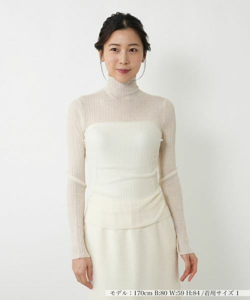 秋冬のレイヤードスタイルにセンシュアルな魅力をプラスする、ハイネックシアーニット。身体に程よくフィットするタイトなシルエットが、女性らしいボディラインを美しく演出。袖口にあしらわれたスリットが手元にさりげない抜け感をプラスします。ジャケットやカーディガンのインナーとして、これからの季節のコーディネートに奥行きとトレンド感を加えてくれる一枚です。