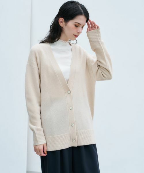 11/12(水)発売!人気スタイリストの大草直子さんとコラボレートした、Vネックカーディガン。ふんわりと軽く、滑らかな肌触りの上質なニットを贅沢に使用しており、一度袖を通せばきっと着心地の良さの虜になるはずです。程よく肩を落としたリラックスシルエットとヒップまで隠れる長めの着丈で、体型を問わずバランス良く着こなせます。フロントにはモダンなダイキャスト製ボタンを採用し、細部にまでこだわりが詰まっています。