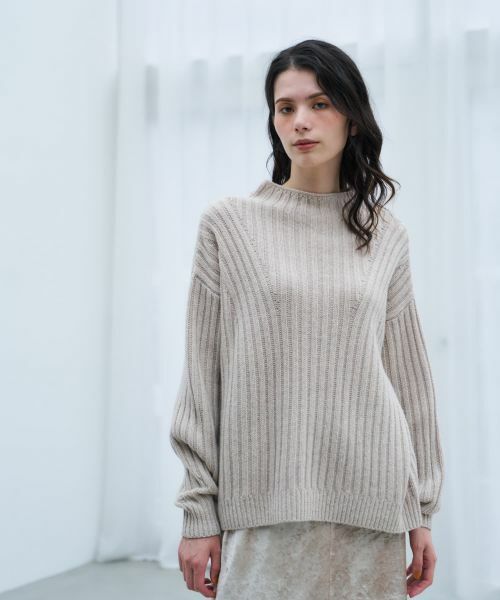 11/12(水)発売!人気スタイリスト・大草直子さんとのコラボレーションで生まれた、一枚で着映えするボトルネックニット。締め付け感のないネックライン、太めのリブ編地が存在感を放つ表情豊かなデザインで奥行きと温もりを与えます。身体を優しく包み込むゆったりとしたシルエットと後ろ下がりのヘムラインが、ヒップ周りをナチュラルにカバーしつつ、着こなしに動きをプラス。ボリュームたっぷりの袖は、手のひらを隠すようにしてスタイリングするのがおすすめです。