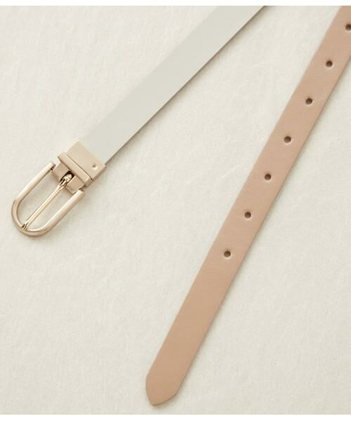 スーツのボトムと合わせやすく、太すぎない2cm巾ベルト。バックルはゴールドのオーバル型でやわらかなイメージを持たせました。バックル部分を真っすぐに引きながら回転させることで、革の表裏を変えてお好みのカラーをお楽しみいただけます。