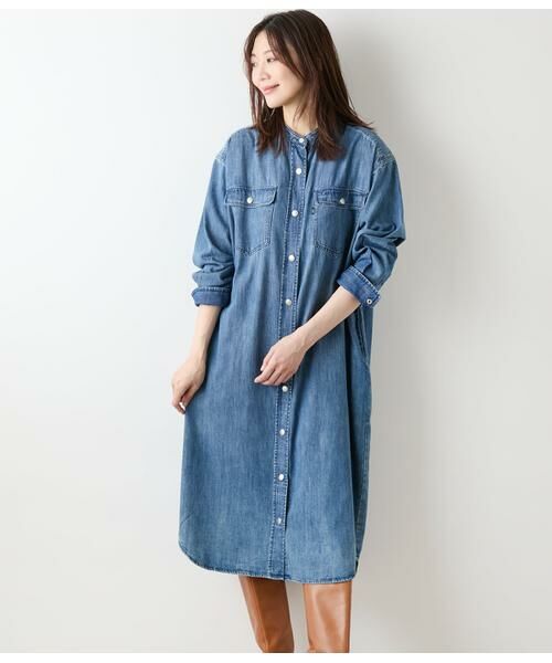 デニムブランド「EDWIN」とコラボしたデニムシャツワンピース。1枚ではもちろん、アウター代わりに羽織ったりニットをプラスしたりと、様々な着こなしが楽しめるアイテムです。軽い素材感でシーズンレスに使えるのも嬉しいポイント。カラーは爽やかなブルー1色展開。