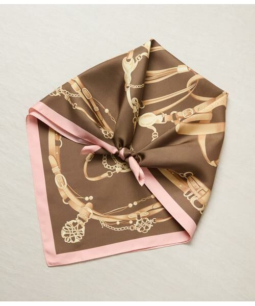 マンテロ社に別注した、NEWYORKERオリジナルのハーネス柄スカーフ。細部までリアルに描かれた馬具のモチーフを散りばめ、クラシカルかつ華やかに仕上げました。額縁のように全体を囲った、動きのあるベルトモチーフもポイントです。カラーはピンクで縁取った落ち着きのあるブラウンと、ネイビーで縁取ったマニッシュなグリーンの2色展開。