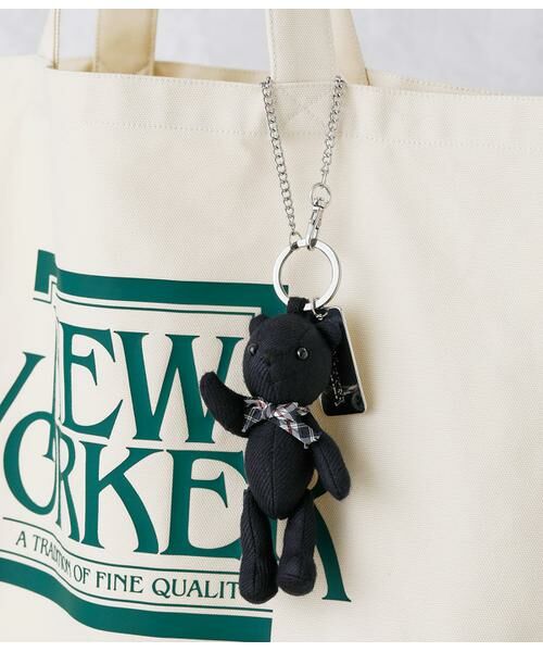 バッグのハンドルや鍵など、様々な持ち物に取り付けられるチェーン付きチャーム。ボタンで留まったベアの手足は動かすことができ、手を上げたり座ったりと、ポーズを変えてお楽しみいただけます。表面はブランドロゴ、裏面はニューヨーカータータンを刻印したプレート付きで、オリジナル感を高めました。
