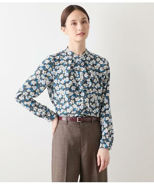 纏うだけでドラマチックに着映える、ビオラフラワープリントのブラウス。やわらかく揺れるフリルが動きに華を添え、1枚で着映えするエレガントなデザインに仕上げました。年末年始の食事会や懇親会・イベントなど、大切な日の思い出を華やかに彩る1着としてもおすすめです。清潔感のあるトーンに花柄が映えるブルー、上品さと成熟した深みを感じさせるパープルの2色展開。