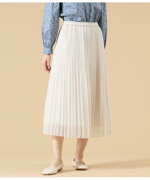 繊細なプリーツ加工をほどこし、動くたびに表情が生まれるプリーツスカート。ウエストは総ゴムで快適な穿き心地なのが嬉しいポイント。裏地あり。ポケットなし。