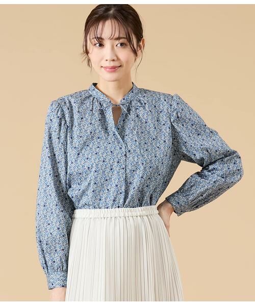 細やかなボタニカル柄に水玉模様の遊び心を忍ばせた、リバティプリントの華やぎブラウス。鮮やかさとほど良い可憐さが共存し、寒い季節のスタイリングに“ぱっと花が咲くような”明るさを添えてくれます。フレッシュな彩りで顔映りもばっちりなグリーン、品のある落ち着きが知的な印象のブルーの2色展開。
