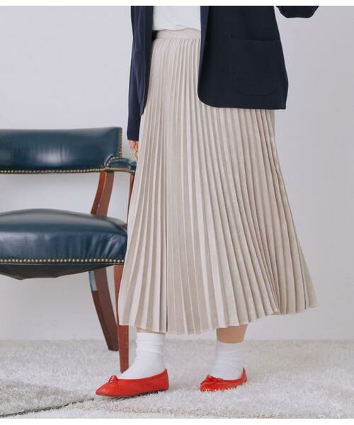 温もりを感じる柔らかなフェイクスエードを使用したプリーツスカート。素材に表情があるため、シンプルなアイテムと合わせるだけで洗練された着こなしが完成します。カラーは優しげなグレージュ、シックに決まるダークブラウンの2色展開。