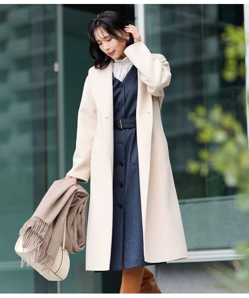 オンにもオフにも映える、凛とした品を纏うショールカラーのロングコート。細番手のウールを贅沢に使用し、ナイロンをブレンドすることでやわらかさと耐久性を両立したリバー素材を使用。軽やかな着心地ながら、ふんわりとしたあたたかさに包まれます。通勤やオケージョン・普段のお出かけまで。シーンレスに寄り添う、上質感漂う大人のきれいめコートです。清潔感がありながらも都会的な洗練された印象のグレー、ソフトで落ち着きを感じさせる優しいグレージュの2色展開。