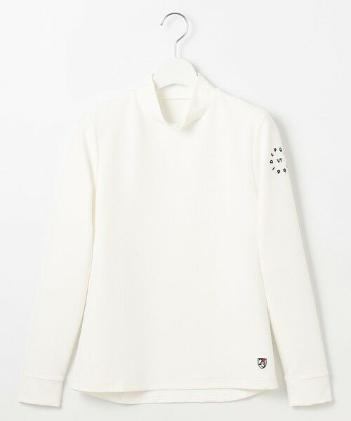エッセンシャルな使い勝手抜群ゴルフインナー■デザイン使い勝手抜群のエッセンシャル(基本的)なインナーカットソー。どんなアウターにも合わせやすい、シンプルでベーシックなモックネックデザインのインナーアイテムです。裾の後ろがフロントよりも3cmほど長く設定されていることで、ヒップラインをカバーしながらもフロントはすっきりとした印象に。裾をボトムス(パンツ、スカート)にインしてもアウトにしてもサマになる、絶妙な裾ラインの設定です。従来のリブインナーアイテムに比べしっかり感のある素材なので、ボディラインを拾いすぎることなく、一枚でも着用することができるゴルフインナーです。左袖にサークルロゴ刺繍、フロント右裾にフラッグモチーフの刺繍入り。